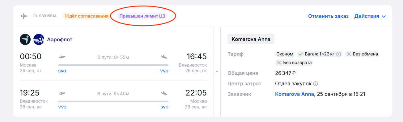 Центры затрат помогают распределять расходы компании по проектам или отделам. Когда сотрудник оформляет заказ, он указывает нужный центр затрат, и эта информация сохраняется в системе и попадает в закрывающие документы. Становится виднее, на что ушли деньги, а ещё так проще вести учёт.