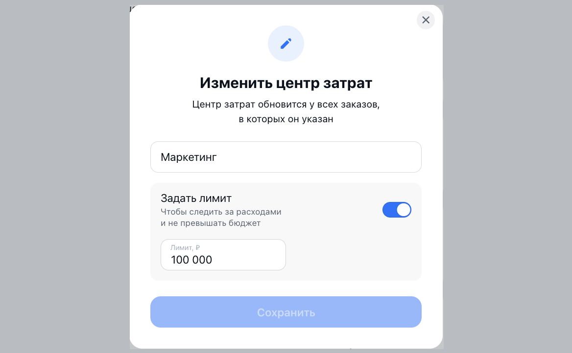 К каждому центру затрат можно привязать лимит — сумму, которую разрешено потратить.